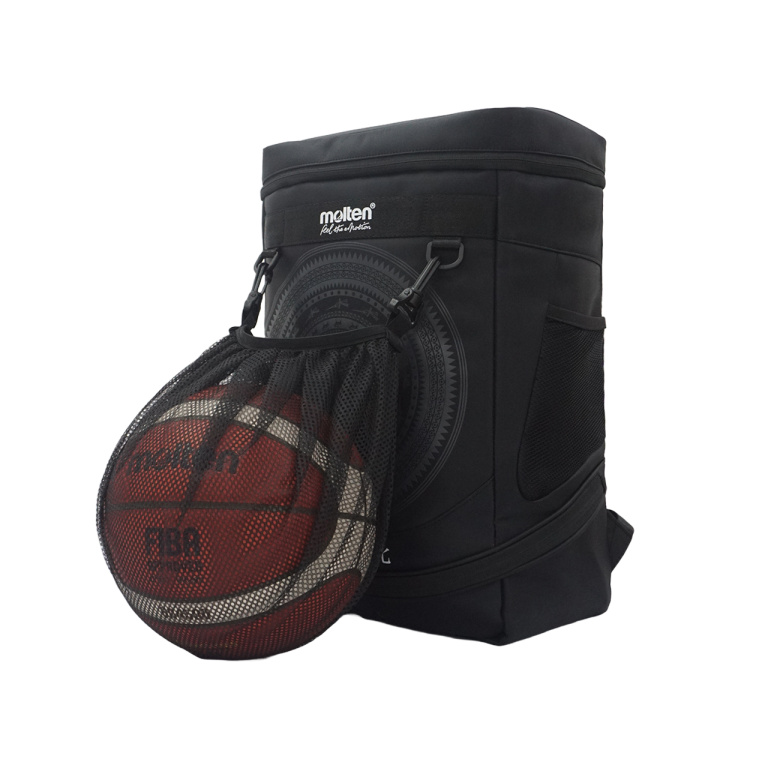 Đính kèm lưới thun đựng các loại bóng được cài treo mặt trước balo