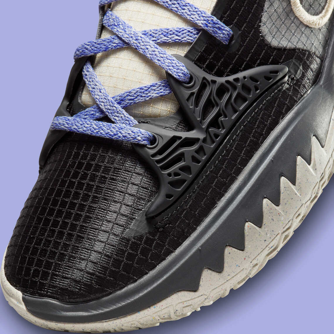 Phân dây giày sự dụng phối màu Violet Purple ma mị tạo điểm nhấn trên phần Upper tưởng chừng như đơn giản nhưng lại vô cùng nổi bật. Bên cạnh đấy, logo quen thuộc của Kyrie đem đến sự hài hòa cho tổng thể cho đôi giày khi sử dụng gam màu Xanh Dương nhẹ nhàng, dịu mắt.