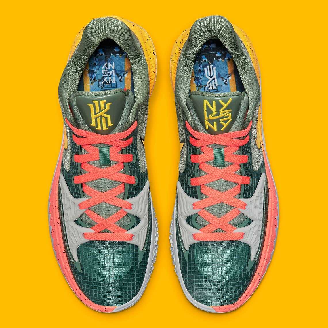 Kyrie Low 4 "Sunrise" là một bức tranh được vẽ nên bởi vẻ đẹp của thành phố New York vào ban ngày khi mặt trời đã mọc. Hai sắc thái Đậm/Nhạt khác nhau của phối màu Dutch Green đặt trên phần Upper được lấy cảm hứng từ những tán cây xanh trong các công viên thành phố New York vào mùa hè.