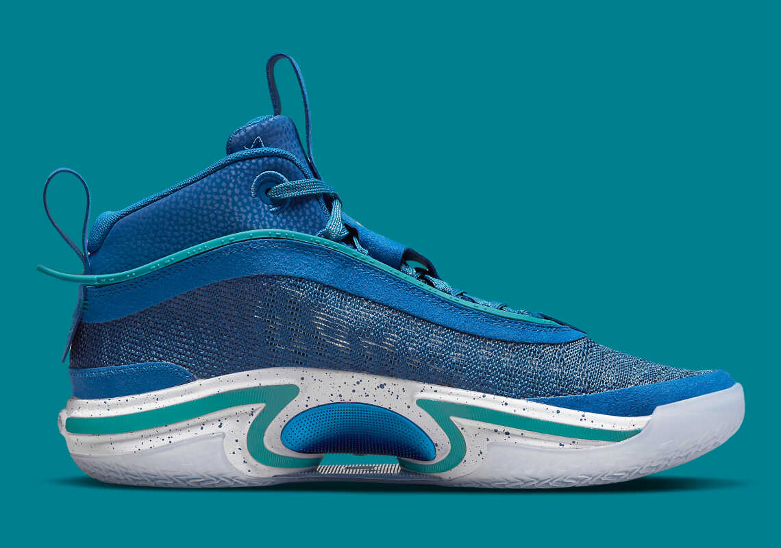 Được Release vào buổi ra mắt truyền thông của đội bóng Slovenia trước kỳ Olympic, phiên bản PE trên đôi giày Jordan 36 dành cho Luka mang cho mình sắc xanh của phối màu Aqua Blue với những đường Line màu Tropical nổi bật xung quanh thân giày.