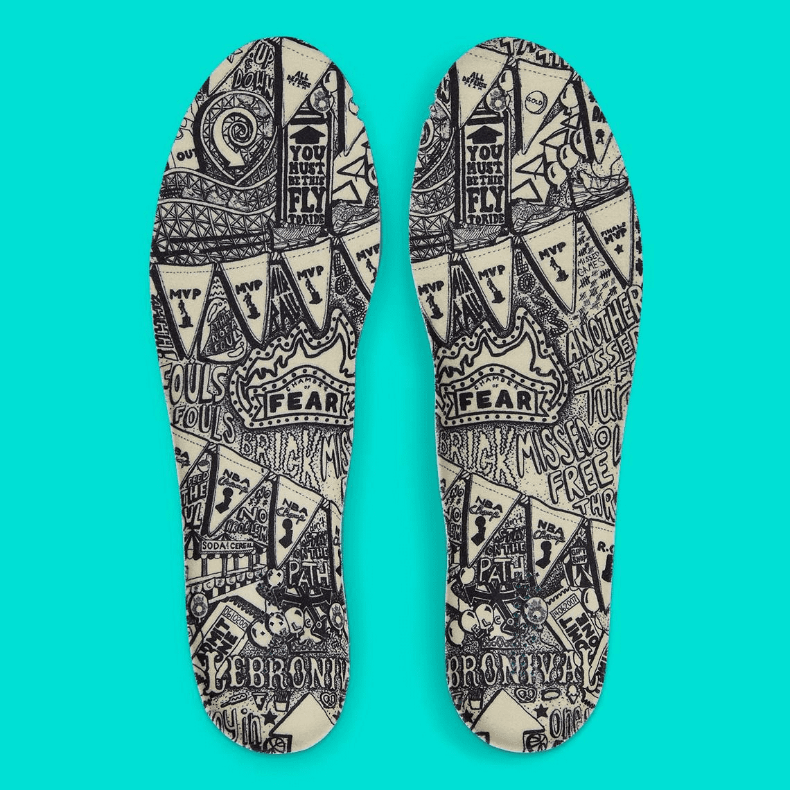 Từng chiến tích mà King James tích lũy suốt 20 năm chinh chiến trên đấu trường NBA được đặt gọn trên 2 tấm lót phía bên trong, từ bốn chức vô địch NBA cho đến danh hiệu MVP của giải đấu được thể hiện qua các biểu ngữ cổ điểu bắt mắt. Song song bên cạnh các danh hiệu đó là những lời chế nhạo của đối thủ phía bên kia chiến tuyến dành cho nhà Vua được đặt xen kẽ với các thành tựu mà anh đạt được. Sự phân đôi yêu/ghét này cho thấy con đường chông gai mà King James phải trải qua trước khi trở thành một GOAT huyền thoại.