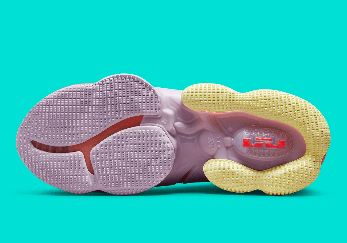Điểm trên lớp da ấy là 2 phối màu chủ đạo đối nghịch nhau với một bên sử dụng tông màu đỏ mận cùng phối màu bắt mắt là xanh lam, Violet, vàng chanh. Phần còn lại của đôi giày là sự dịu mắt với tông xanh bạc hà đầy lôi cuốn. Các mảng màu được ghép nối đúng cách tạo nên sự đồng điệu lạ thường cho toàn bộ tổng thể thiết kế của phiên bản này.