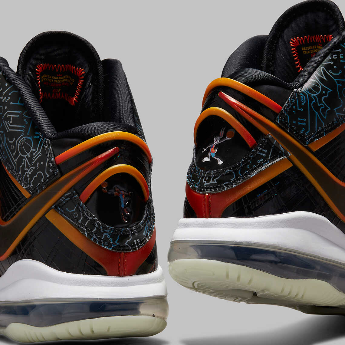 Hình ảnh 2 nhân vật chính chủ chốt của đội bóng "Tune Squad" là Lebron James và Bugs Bunny được đưa lên trên phần gót giày.