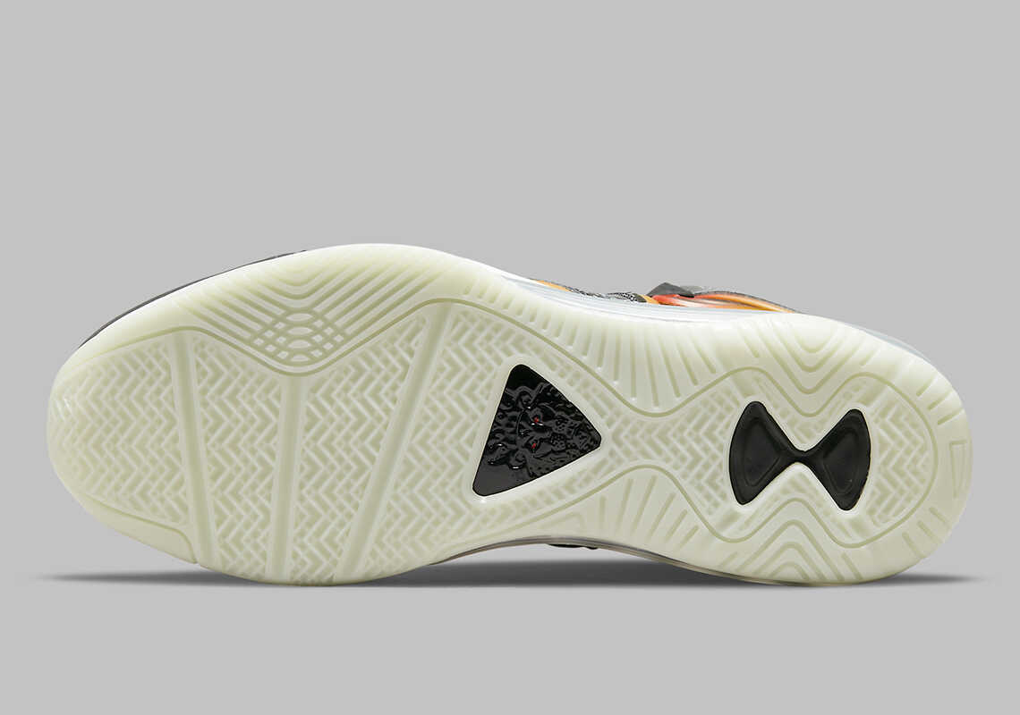 Một chút sắc cam được dùng để tạo điểm nhấn trên đôi giày tối màu ở các đường viền bao quanh 2 phần thân giày cùng logo Nike Swoosh.