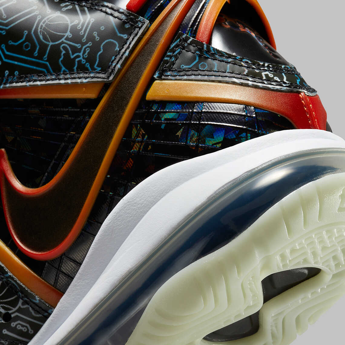 Từ phần cổ chân kéo xuống phần gót có sự xuất hiện của các hoạ tiét giống như đường truyền thông tin lưu động trong "Thế Giới Siêu Máy Tính" xuất hiện ở gần đầu bộ phim.