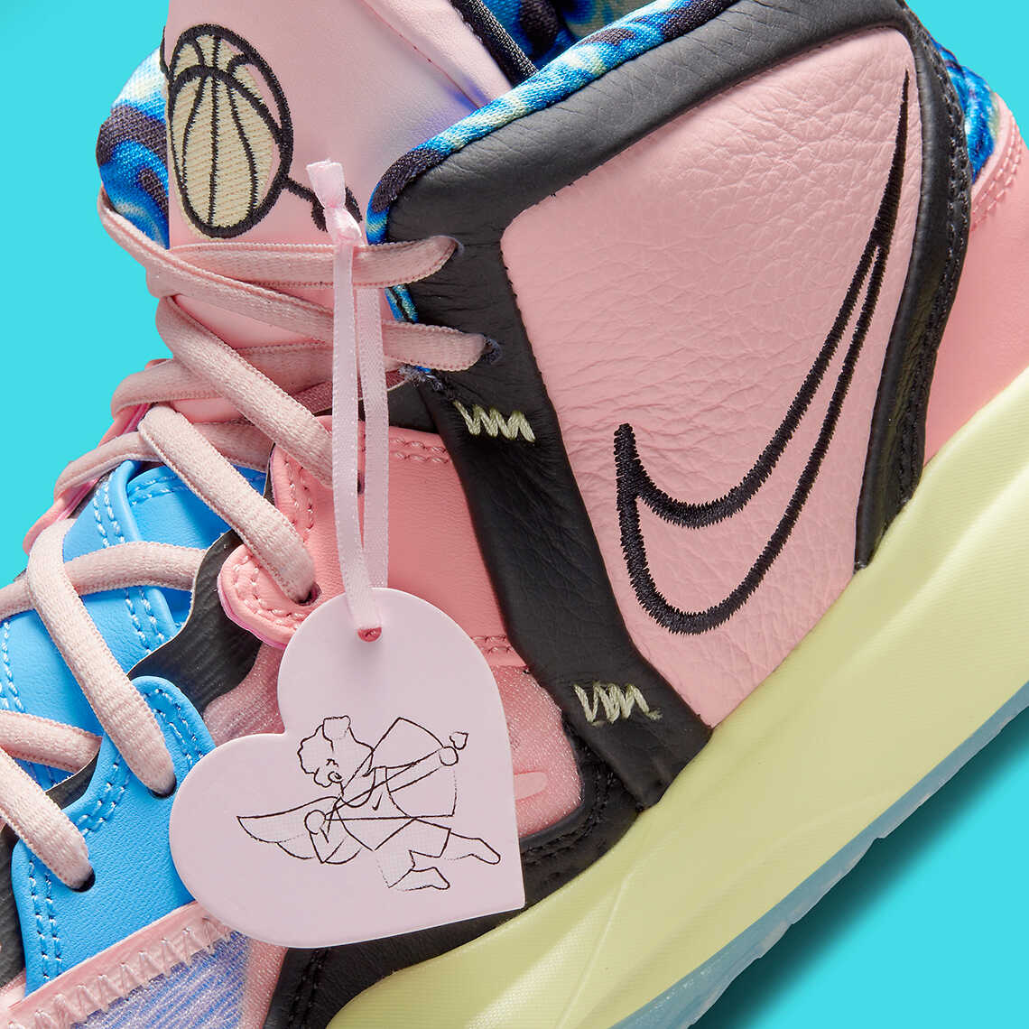 Một chi tiết nổi bật không thể bỏ lỡ trong phiên bản Kyrie Infinity "Valentine" là tấm lót mang hoạ tiết thần Cupid đang bắn mũi tên vào quả bóng rổ.