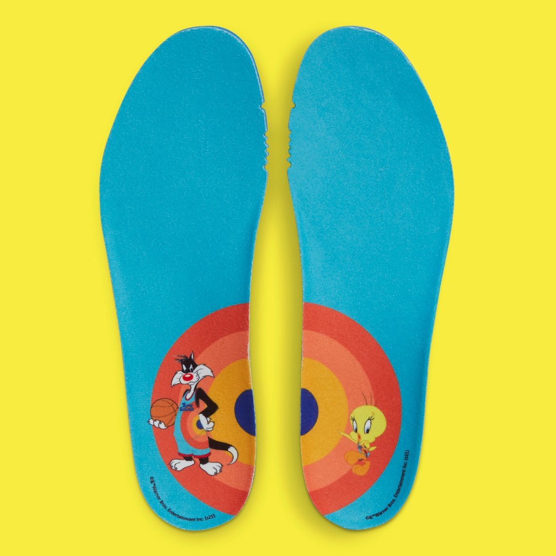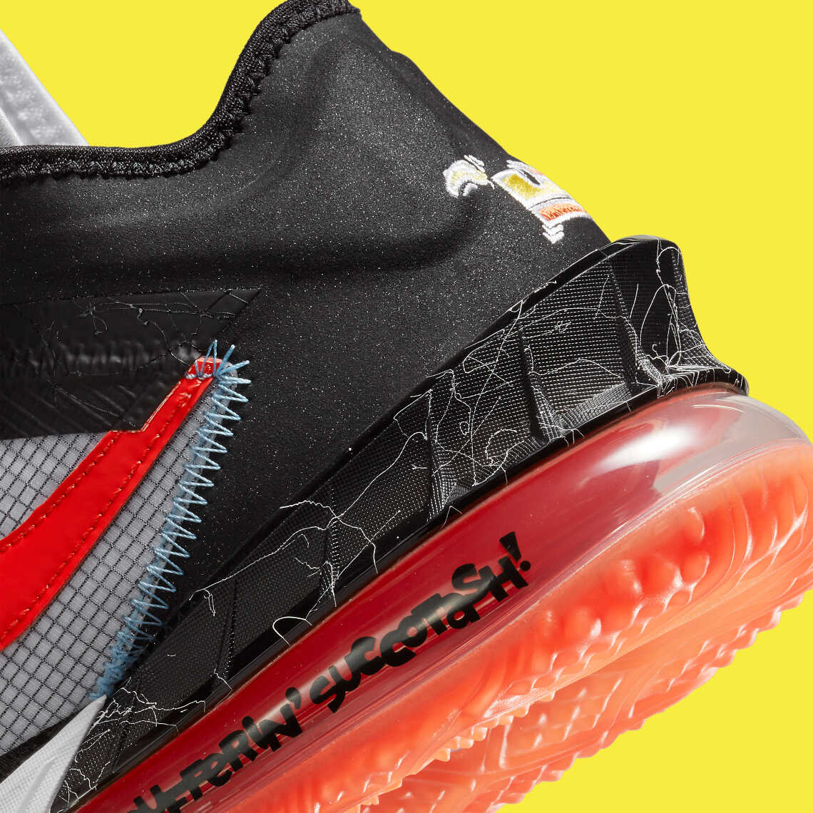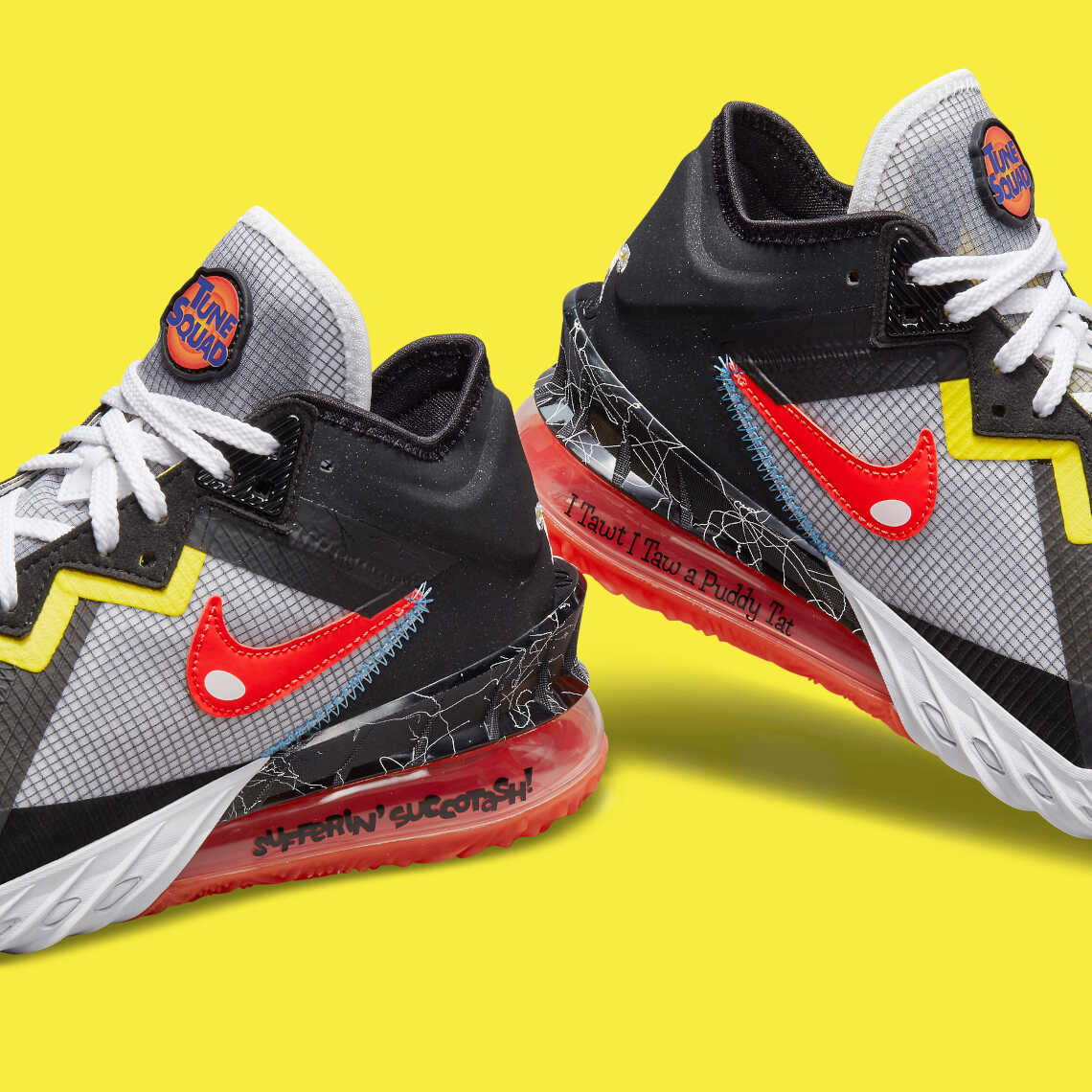 Đi xuống phần đệm Air Max trên phiên bản Lebron 18 Low x Space Jam là 2 câu thoại thú vị của Tweety và Sylvester mỗi khi chúng chạm mặt nhau: "I Tawt I Taw a Puddy Tat" và "Sufferin'succotash!".