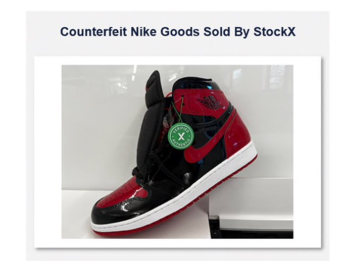 Trong một phiên toà vừa qua, Nike cho biết: "Bốn đôi giày giả đó đều được mua trong khoảng thời gian hai tháng ngắn ngủi trên nền tảng Stock X; tất cả đôi giày khi mua đều được gắn mác đã thông qua hệ thống kiểm duyệt của Stock X và được đính kèm thêm một biên lai bỏ trong hộp đến từ Stock X"