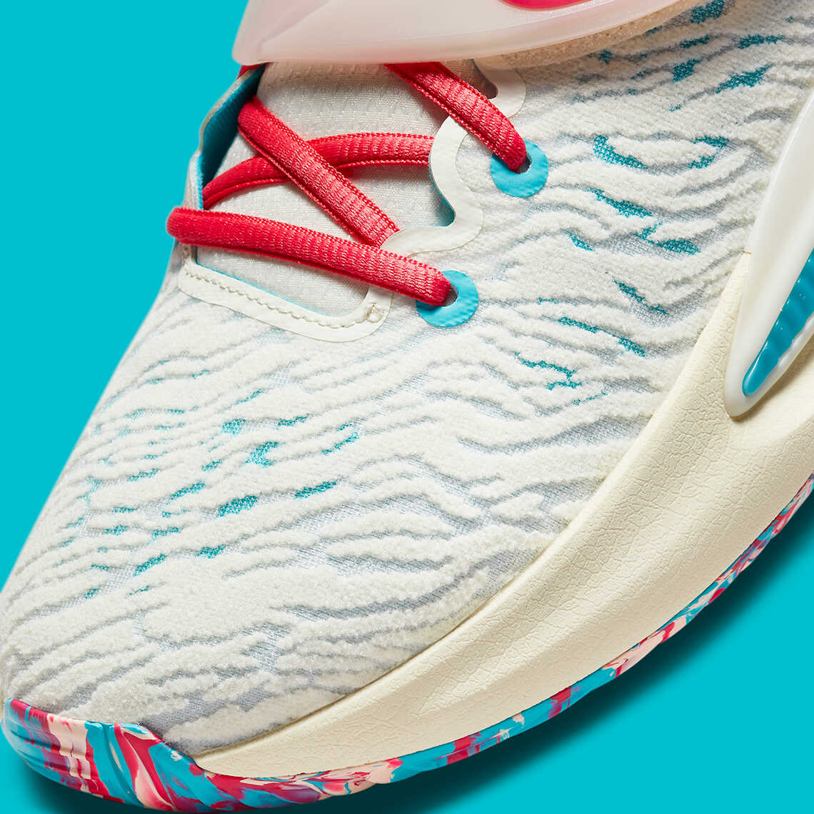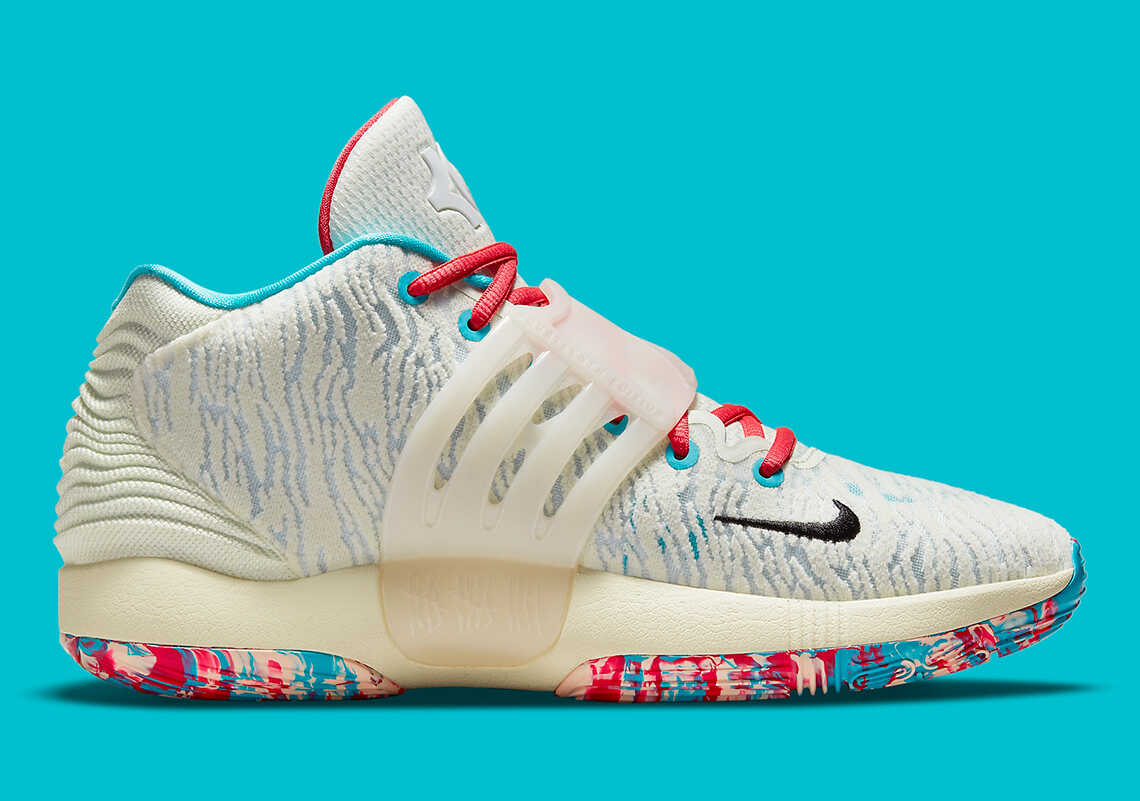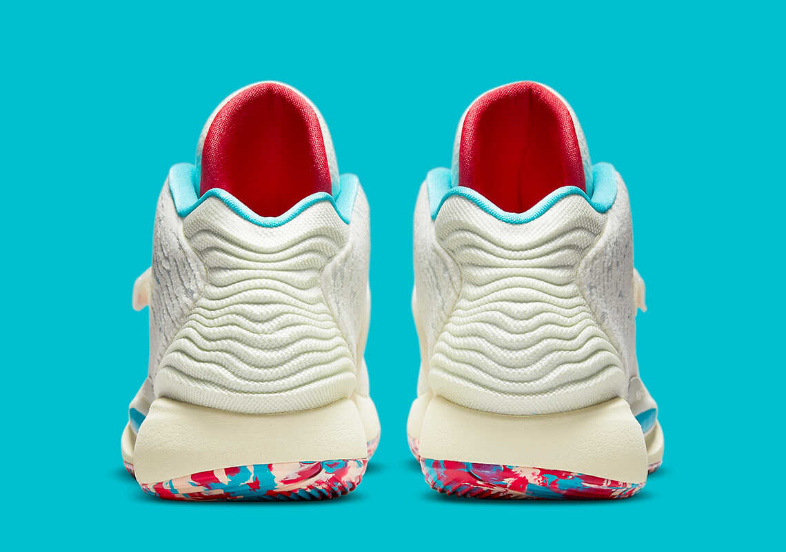Phần Outsole của KD14 cũng mang đến sự sáng tạo vô cùng độc đáo khi tại đây là sự hoà trộng giữa Aqua Blue và University Red khiến phiên bản này giống như một tác phẩm nghệ thuật hơn là một bộ đế bình thường.