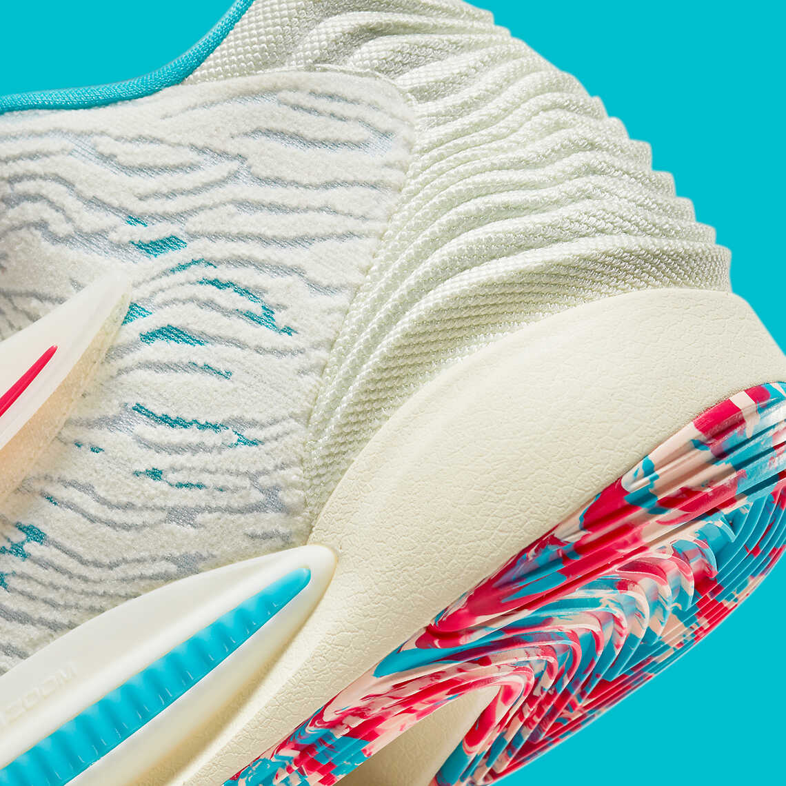 Phối màu mới được công bố này là sự kết hợp hài hoà giữa 3 màu Sail/University Red/Aqua Blue. Ở phần Upper của đôi giày, với nguồn cảm hứng từ hình ảnh viên ngọc trai nằm trong lòng đại dương cùng với chất liệu Multi-Layer Mesh, cho phép Nike sử dụng cùng lúc 2 gam màu Sail cùng Aqua Blue đặt chồng lên nhau.