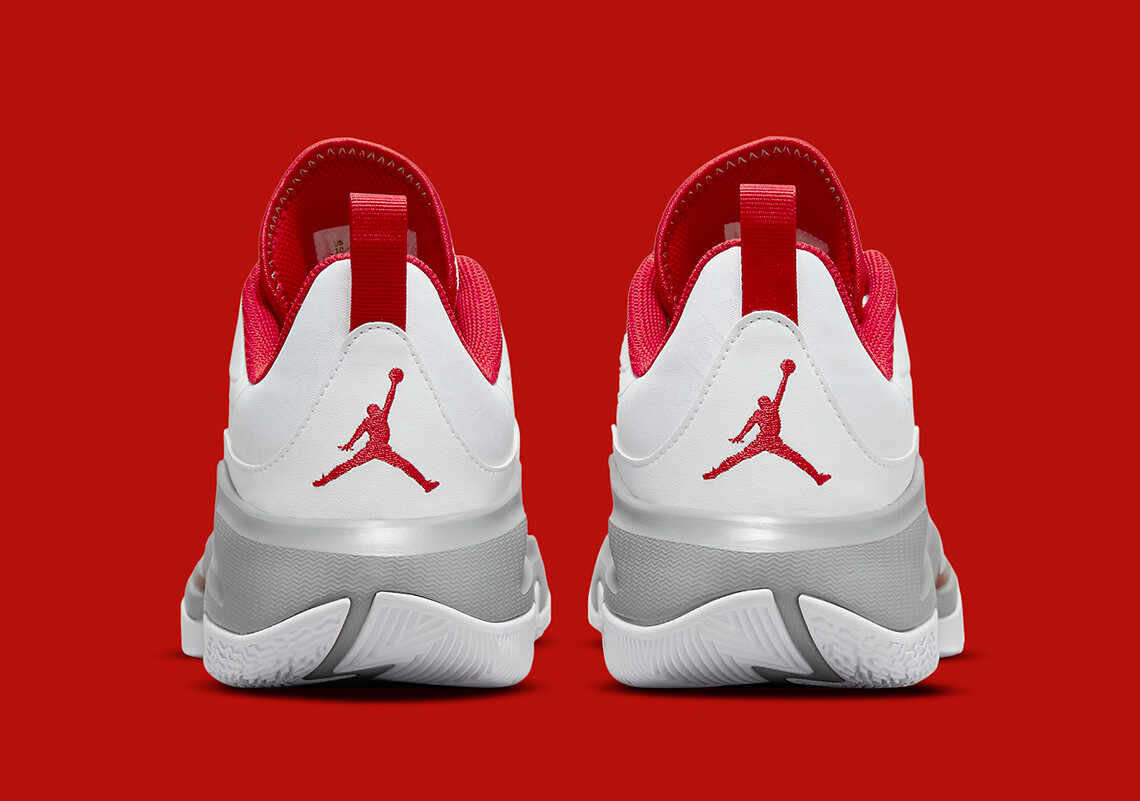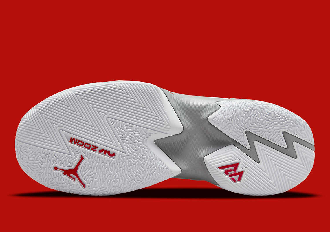 Trong khi đó, phối màu Fire Red đã và đang làm tốt nhiệm vụ của mình trong việc tạo điểm nhấnở các chi tiết đáng chú ý nằm trên đôi giày như đường Line tạo viền cho lớp Fuse ở má ngoài Upper hay Logo Jumpman - biểu tượng cho đại gia đình Jordan Brand và logo "WB" nằm ở đầu lưỡi gà.